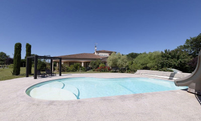 Édifiée à la fin du XIXe siècle, cette superbe maison de maître a traversé les époques sans perdre une once de son élégance. Entièrement rénovée dans les années 90, elle marie avec brio le charme de l'ancien et le confort moderne, dans un environnement paisible à seulement 1,5 km du centre-ville de Lavaur. Derrière sa façade en brique et pierre recouverte de verdure se cache une demeure d'environ 310 m² habitables, baignée de lumière et pensée pour accueillir famille et amis dans un cadre empreint de sérénité. Dès l'entrée, l'atmosphère est unique : l'escalier trois-quarts tournant, façonné en orme centenaire et orné de balustres en bois tourné, est un véritable chef-d'œuvre signé d'un compagnon du devoir. Dans le salon, la rose des vents incrustée au sol rappelle ce même souci du détail et du travail d'exception. Le rez-de-chaussée dévoile un espace de vie généreux, convivial et parfaitement organisé. Une très grande cuisine contemporaine, entièrement repensée, se prolonge naturellement sur la salle à manger, offrant un lieu où il fait bon cuisiner, partager et recevoir. Le salon, séparé, apporte une atmosphère plus feutrée, idéale pour se détendre au coin du feu. L'ensemble est sublimé par une cheminée traversante à foyer fermé. Une chambre de plain-pied complète ce niveau, pour un confort au quotidien. À l'étage, quatre chambres spacieuses accueillent famille et invités, dont trois véritables suites avec salle d'eau ou salle de bains privative. Les poutres apparentes, la hauteur sous plafond et les matériaux nobles renforcent cette sensation d'harmonie et d'authenticité. À l'extérieur, la magie continue. Le parc de plus de 7 000 m² se déploie dans une ambiance champêtre et raffinée, avec ses arbres centenaires, sa roseraie éclatante, son potager généreux et son terrain de pétanque à l'ombre des grands chênes. On y trouve aussi une piscine au sel avec fonction balnéo, une cuisine d'été, un atelier, deux puits et une cuve enterrée de 10 000 litres pour la récupération d'eau. Le chemin d'accès refait à neuf et la toiture récemment remaniée et traitée anti-mousse témoignent de l'entretien irréprochable de la propriété. Une demeure unique, où la noblesse des matériaux rencontre le confort moderne, dans un cadre verdoyant et intime. Ici, tout est calme, beauté et authenticité — une véritable maison de cœur, à vivre autant qu'à admirer. Les informations sur les risques auxquels ce bien est exposé sont disponibles sur le site Géorisques : Prix de vente : 849 000 euros Honoraires charge vendeur Contactez votre conseiller SAFTI : Sébastien BERTHIER - EI - Agent commercial immatriculé au RSAC de CASTRES sous le numéro 825 298 565