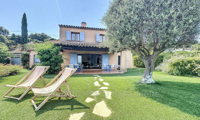 SOUS OFFRE : Dans le domaine de l'Eau blanche, au calme avec une belle vue dégagée et quelques percées sur la mer, cette maison des années 70 est à rénover. Possibilité de créer une piscine et d'agrandir la maison. Très beau jardin en restanques, avec une barrière rocheuse naturelle qui donne un cachet au terrain. La partie principale en rez de jardin (env. 67 m2) est composée d'une pièce de vie avec cheminée, une cuisine séparée, deux chambres, une salle de douche, un wc. Terrasse couverte donnant sur un jardin plat. En rez de chaussée se trouvent un garage (22m2) pouvant acceuillir une voiture, une grande cave (14m 2) et un studio (44 m2) avec cuisine séparée et salle de douche / wc. Plusieurs espaces extérieurs pour profiter pleinement du jardin . Très beau potentiel dans un cadre très agréable.