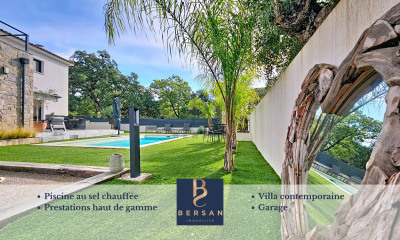 Votre agence BERSAN Immobilier vous propose cette villa de plain-pied , idéalement située dans le quartier recherché de la Tour de Mare , à quelques pas des commerces. Elle se compose d'un séjour double , baigné de lumière, et agrémenté d'une mezzanine , créant un espace chaleureux et aérien. La cuisine indépendante , fonctionnelle et bien agencée, s'ouvre sur une terrasse couverte , parfaite pour des repas en extérieur en toute saison. La villa de plain pied est complétée par trois chambres , dont deux avec dressing et une avec sa salle d'eau privative et wc , offrant confort et intimité. À l'extérieur, la parcelle sans vis-à-vis offre un cadre agréable et intimiste. Vous profiterez d'une piscine hors sol , idéale pour se rafraîchir en été, ainsi que d'une terrasse ouverte , parfaite pour profiter pleinement du soleil. Côté stationnement, cette maison dispose d'un garage et de plusieurs places de stationnement, facilitant le quotidien. Son emplacement privilégié dans un environnement verdoyant, tout en étant proche des commodités, en fait un bien rare sur le marché immobilier de Fréjus. L'équipe de l'agence BERSAN Immobilier reste à votre service pour vous apporter de plus amples informations.