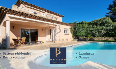 FREJUS, en fond d'impasse au calme absolu et sans aucun vis à vis. Venez découvrir cette villa de 150m2 habitable sur 1182 m2 de terrain. Elle se compose d'un séjour/salle à manger, une cuisine aménagée et équipée, une arrière cuisine buanderie, une chambres avec sa salle de douche et ses wc, un wc invité. Quelques marches plus haut, 3 chambres dont une en suite avec salle de douche et wc, une salle de bains et un wc. Un grand garage servant essentiellement de stockage. Piscine.