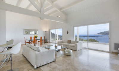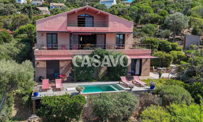 Située sur l’île du Levant, cette villa rare de 120 m² s’inscrit au cœur d’un terrain clos et paysager de 1 610 m². Face à la Méditerranée et à l’île de Port-Cros, elle offre un cadre de vie d’exception, préservé et intimiste, entre mer, pins et quiétude absolue. Exposée plein ouest, la propriété profite du soleil jusqu’à son dernier rayon. Chaque fin de journée, la vaste terrasse se pare d’une lumière dorée tandis que le ciel se teinte de nuances flamboyantes au-dessus de l’horizon : un spectacle quotidien, véritable signature des lieux. Le niveau principal s’organise autour d’une pièce de vie d’environ 30 m², baignée de lumière naturelle, avec cuisine indépendante et accès direct à une terrasse panoramique de 60 m². Une chambre avec salle d’eau attenante complète ce niveau, pour une vie largement ouverte sur l’extérieur. À l’étage inférieur, deux chambres indépendantes d’environ 20 m² chacune disposent de leur propre salle d’eau et d’un accès direct à la piscine chauffée au sel, créant de véritables suites pour inviter en toute autonomie. L’étage supérieur accueille un bureau de 25 m², prolongé par une terrasse intimiste, idéal pour un espace de travail inspirant ou un salon privé. Finitions soignées, chaque détail a été pensé pour offrir un confort contemporain dans le respect de l’esprit des lieux. La villa développe ainsi trois chambres et trois salles d’eau, un agencement parfait pour recevoir famille et amis ou envisager une activité d’hébergement haut de gamme. L’ensemble bénéficie d’une intimité totale, sans vis-à-vis, avec une vue mer panoramique omniprésente. Sur l’île du Levant, la circulation automobile est inexistante : on se déplace à pied, au fil de sentiers ombragés aux senteurs de garrigue. Commerces et restaurants restent ouverts toute l’année, dans une ambiance conviviale et apaisée. La nuit, l’absence de pollution lumineuse révèle un ciel étoilé spectaculaire.