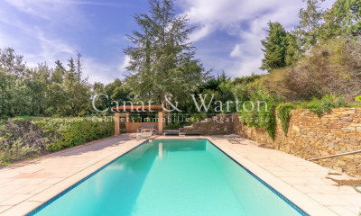 Une villa qui parle à la mer…Proche du prestigieux Golf de Valcros et son environnement paisible, découvrez cette villa provençale de 7 pièces, nichée au cœur de la nature, avec une vue panoramique imprenable sur la mer et les îles d’Hyères. Un cadre d’exception : Ici, tout évoque la douceur du Sud : le parfum du cèdre, le chant des cigales, et l’horizon infini où le bleu du ciel rejoint celui de la Méditerranée. Bâtie sur un terrain paysager de 1 985 m² en restanques, la maison offre calme, intimité et aucun vis-à-vis. Autour, des coins d’ombre propices à la sieste, un boulodrome pour les après-midis ensoleillés, et une piscine invitent à la détente. Un intérieur lumineux et convivial : Dès l’entrée, un grand vestibule mène vers un salon avec cheminée, puis une salle à manger baignée de lumière, ouverte sur la terrasse et son panorama exceptionnel. La cuisine provençale, s’ouvre sur une terrasse couverte idéale pour les repas d’été. Le rez-de-chaussée comprend également : 2 chambres,1 salle de bain des WC séparée, une arrière cuisine buanderie et une serre lumineuse, À l’étage, la mezzanine accueille un bureau et une chambre mansardée. Au niveau inférieur, un second séjour avec cuisine, une grande chambre de 23 m², une cabine pour enfants, une salle d’eau et une cave à vin complètent l’ensemble. Extérieurs & prestations : un portail automatique, Parking pavé et garage,Abri voiture, Jardin méditerranéen arboré, Exposition plein sud, Vue panoramique mer et collines