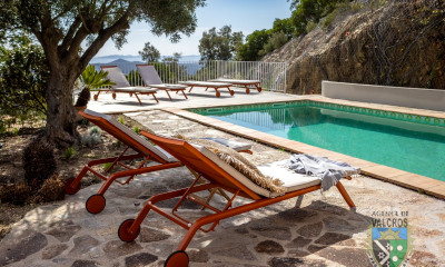 Vente maison 6 pièces + appartement 2 pièces indépendant avec piscine sur le Golf de Valcros. Dans un secteur recherché du Domaine de Valcros, au-dessus du parcours de golf, sans vis à vis avec superbe vue dégagée, vous serez séduit par cette villa relookée dans un style plus contemporain. On accède à la maison par l'arrière et l'on découvre la cuisine américaine ouverte sur la salle à manger et le salon ouverts par baie vitrée et fenêtres en ouest. Une grande mezzanine surplombe la salle à manger qui ouvre sur une terrasse et l'escalier permettant d'accéder à la terrasse piscine. Une chambre, sa salle de douche et un WC séparé viennent compléter ce niveau Au niveau N-1: une suite parentale (avec salle de douche + WC et dressing) et une chambre. Avec accès indépendant vous trouverez un T2 i avec salon, cuisine, une chambre, une salle d'eau et une cave. Le T2 dispose d'une terrasse privative. La maison a été régulièrement entretenue et est équipée de climatisation réversible. En extérieur: une vaste terrasse entourant la piscine à débordement (équipée d'une pompe à chaleur), une pergola abrite un coin cuisine d'été. Ici vous pourrez vous prélasser sans vis à vis et au calme. On peut stationner 2 véhicules dans la propriété et il existe une place de stationnement à l'extérieur. Venez vite découvrir ce bien rapidement. Contactez nous ou