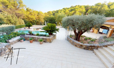 Bastide provençale de 324 m², au charme intemporel, entièrement rénovée avec des matériaux nobles et contemporains.Niché au cœur d'un domaine de 27 hectares, à seulement quelques minutes de Lorgues, ce bien d'exception incarne l'âme authentique de la Provence. Cette demeure séduit par son environnement unique, sublimé par ses arbres centenaires, son oliveraie, son vignoble ainsi que par ses prestations haut de gamme. Le rez-de-chaussée propose une élégante entrée, une buanderie, ainsi qu'une cuisine en céramique entièrement équipée d'électroménager premium, ouverte sur un double séjour cathédrale de 115 m², baigné de lumière grâce à de vastes baies vitrées. À l'étage, 2 magnifiques suites, dont une suite parentale de 45 m² avec dressing et salle de bains, offrent des volumes généreux et une atmosphère raffinée. En rez-de-jardin, 3 autres suites spacieuses, allant de 20 à 45 m², accueillent vos hôtes dans un confort absolu. Les extérieurs offrent un véritable espace de détente avec une piscine style Bali de 12 × 6 m, un garage en sous-sol de 49 m² et un garage indépendant de 73 m², laissant place à de multiples aménagements ; une maison de jardin et un terrain de pétanque viennent compléter ce bien. Bâtie en pierres sèches, la bastide allie charme et modernité avec chauffage au sol, domotique, sols en pierre et salles d'eau contemporaines. Classe énergie : A (57KW)- Classe climat : A (2KG) / montant estimé des dépenses annuelles d'énergie pour un usage standard : entre 1710€ et 2380€ (année de référence 2026). Les informations sur les risques auxquels ce bien est exposé sont disponibles sur le site Géorisques :