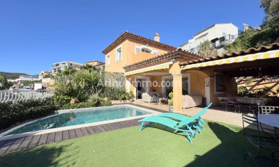 À Sainte-Maxime, située dans une résidence calme et sécurisée, cette villa moderne de 140 m², orientée plein sud, offre une vue mer panoramique sur le golfe de Saint-Tropez. Son emplacement privilégié permet d’accéder à pied à la plage (150 m), aux commerces, aux restaurants et aux bateaux verts pour rejoindre Saint-Tropez. Fort potentiel locatif, emplacement rare et très recherché. Elle se compose au rez-de-chaussée d'une grande pièce de vie de 50 m² comprenant salon, salle à manger et cuisine ouverte, le tout donnant sur la terrasse et la piscine. Une chambre parentale avec salle d’eau privative et accès terrasse. WC indépendant, nombreux rangements. À l’étage : une chambre de maître avec salle de bains (baignoire + douche, WC) et terrasse avec vue mer. Une seconde chambre avec salle d’eau, un espace TV et une chambre d’enfants avec lits superposés. Équipements : climatisation dans toute la villa, TV dans chaque chambre. La villa peut également être vendue entièrement meublée, prête à vivre ou à exploiter immédiatement en location saisonnière. L’extérieur a été pensé pour la détente : piscine à débordement (4,6 × 3 m), grande terrasse en bois avec salon extérieur, transats et coin repas. Un garage fermé ainsi qu’une place de parking privative complètent ce bien d’exception.