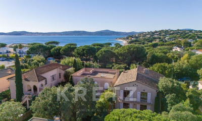 * Co-Exclusivité * Située dans le secteur recherché de La Nartelle, cette villa récemment rénovée bénéficie d’une exposition plein sud offrant une vue imprenable sur la mer et le Golfe de Saint-Tropez. Cette propriété se compose d’une villa principale de 300 m² ainsi que d’un appartement indépendant de 45 m². L’ensemble présente de beaux volumes grâce à une architecture soignée et une décoration intérieure qui marie avec élégance le design contemporain au charme provençal, créant une ambiance à la fois moderne et accueillante. Elle offre des prestations de qualité, comprenant un vaste séjour avec cheminée, cinq chambres avec leurs salles de bains privatives, un bureau, une buanderie et un cellier. L’appartement indépendant comprend quant à lui deux pièces et une salle de bains. À l’extérieur, un jardin paysager de 3 000 m² abrite une piscine chauffée ainsi qu’une cuisine d’été équipée d’un espace barbecue au feu de bois. Un garage et plusieurs places de stationnement complètent ce bien d’exception. CLASSE ÉNERGIE: C - CLASSE CLIMAT: A/ Montant estimé des dépenses annuelles d'énergie pour un usage standard : 564€ - 764€ - 2021 année de référence DPE nouvelle version