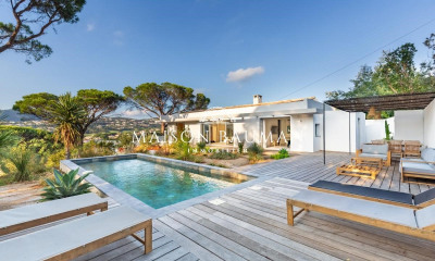 * Co-Exclusivité * Située à Sainte Maxime, à seulement 200 m des plages,cette Villa californienne de 252 m² en copropriété dans un environnement calme et résidentiel, érigée sur un terrain d'environ 1000 m² avec une piscine 13 x3.30 m, un terrain de pétanque, un parking ainsi qu'une grande terrasse face à la mer. Cette maison sur 2 niveaux offre une vaste pièce de vie très lumineuse avec une belle hauteur sous plafond avec une cheminée à foyer ouvert ,une salle à manger et une cuisine ouverte entièrement équipée, toilettes invités, un bureau faisant office de dortoir, une chambre de maitre avec vue mer dégagée dans la partie principale et 3 chambres indépendantes avec salles de douche et toilettes en rez de jardin . En sous sol, celle-ci bénéficie d'une pièce de jeux de 30 m² ainsi que d'un double garage de 60 m². Possibilité de réaliser deux chambres supplémentaires au premier étage. Chauffage au sol et climatisation en split pour ce bien