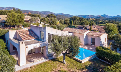 Exclusivité. Saint-Raphaël, Rare à la vente sur le secteur très recherché de Valescure. Charmante villa de plain-pied offrant de beaux volumes et un cadre de vie privilégié. Elle se compose d'un séjour lumineux, d'une cuisine, de deux chambres, ainsi que d'un bureau idéal pour le télétravail, ou troisième chambre. La propriété s'ouvre sur un agréable extérieur avec piscine couverte, parfait pour profiter du climat méditerranéen, et dispose d'un double garage. Située à proximité immédiate des golfs de Valescure, des commerces, dans un environnement calme et résidentiel. Cette villa allie confort, fonctionnalité et emplacement d'exception.