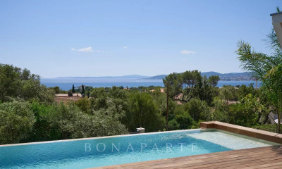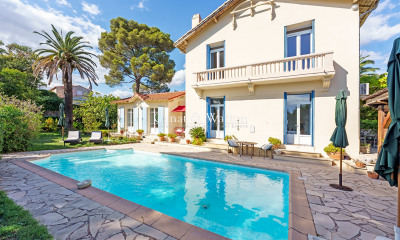 BOULOURIS, Secteur résidentiel à 3 mn de voiture de la mer et commerces, découvrez sans tarder cette villa Californienne des années 60, dessinée par l'architecte Guy Giger, donnant corps à des lignes modernes, des porte à faux élégants et une façade épurée. Rénovée récemment, elle offre 270 m² habitables de volumes clairs et traversants, climatisés, propose une réception de de 60 m² avec cuisine semi ouverte, terrasse dominante de 40m² avec aperçus mer, une master bedroom de 37 m² avec dressing, sdd, toilette. En rez de jardin, 5 chambres confortables, 3 pièces d'eau, 4 wc, salle de jeux, buanderie, garage de 31m². Solarium sur le toit de 60 m². En extérieur, piscine avec spa à débordement entourée d'un jardin de 1220m² aménagé.