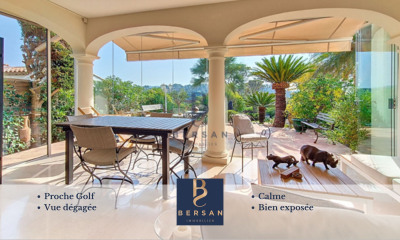 Située dans un quartier prisé de valescure, au calme absolu et sans aucun vis à vis, belle villa néo-provençale de 6 pièces entièrement rénovée en 2021 avec des prestations modernes. Cette villa propose 4 chambres dont une de plain pied , un grand séjour avec cuisine ouverte sur séjour et coin salon, une buanderie et un cellier attenants. 2 salles d'eau et une salle de bains, 2 toilettes séparés. Le tout sur un terrain arboré et aménagé avec plusieurs terrasses dont une protégée avec BBQ, une grande piscine chauffée et traitement au sel, un parking pouvant recevoir 4 véhicules et 2 garages. N'hésitez plus contactez l'agence IMMOGOLF pour venir la découvrir
