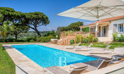 Découvrez cette magnifique villa située à quelques pas de la célèbre plage des Salins, offrant des prestations de qualité supérieure. La propriété se compose d'un spacieux et lumineux salon, d'une cuisine moderne ouverte sur la salle à manger, ainsi qu'un salon télé en mezzanine. Vous trouverez également une chambre de maître avec dressing, une salle de bain équipée d'une douche et de toilettes, ainsi qu'une deuxième chambre avec sa propre salle de douche et toilettes. En outre, la villa comprend une maison indépendant disposant de deux chambres, chacune avec salle de douche, et un salon télé en mezzanine, idéal pour accueillir famille ou amis. Les pièces volumineuses s'ouvrent sur une superbe piscine, entourée d’un jardin arboré, créant un cadre de vie idyllique pour profiter des journées ensoleillées. Ne manquez pas cette opportunité unique de vivre dans l'un des endroits les plus prisés de Saint-Tropez.