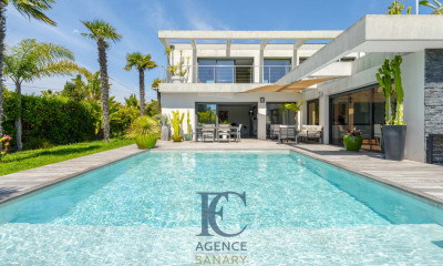 Venez découvrir cette magnifique villa rénovée d'une superficie de 183 m² qui saura vous séduire avec ses prestations haut de gamme, sur une parcelle de 2 000 m² située dans un quartier prisé de Sanary-sur-Mer. Commençons cette description par le rez-de-chaussée où vous retrouverez une belle entrée, un salon et ses grandes baies vitrées offrant un visuel sur le jardin, une salle à manger avec cuisine ouverte sur mesure donnant sur la terrasse avec ses baies à galandage et sa pergola bioclimatique pour profiter pleinement de l'extérieur en toute saison ainsi qu'une piscine et jacuzzi, une suite parentale, un WC japonais, une seconde cuisine avec cellier et buanderie, et un second salon pouvant être réaménagé en une seconde chambre. Poursuivons avec l'étage, qui dessert une chambre avec salle d'eau, placard et sa terrasse équipée d'un jacuzzi et d'un aperçu mer. Une dépendance de type 2 de 41 m² avec terrasse entièrement rénovée avec son entrée indépendante sur le terrain, idéale pour accueillir famille, amis ou pour un projet locatif. Côté extérieur, une cuisine d'été sous la paillote, un brasero, un four à pizza, un espace de jeu couvert et un terrain de pétanque agrémentent la piscine aux dimensions de 12x4m avec carreaux luminescents. La villa dispose de deux entrées par grand portail, un garage, arrosage automatique, canal de Provence facilitant l'entretien du jardin et aspiration centralisée. Cette propriété allie confort moderne, espaces généreux et prestations de qualité. Un véritable havre de paix à découvrir sans tarder ! Référence agence : 1860