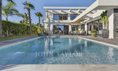 Située dans un quartier calme et résidentiel, découvrez cette maison d’architecte de 250 m², édifiée sur un terrain arboré et paysager de 800 m², avec piscine à remous et à débordement, offrant une belle vue panoramique. Au rez-de-jardin, vous trouverez une entrée, une salle de séjour d’environ 50 m², un espace cuisine avec salle à manger, le tout donnant sur une généreuse terrasse de 60 m² exposée, qui vous permettra de passer d’agréables moments en famille ou entre amis. L’espace nuit offre deux spacieuses suites parentales à l’étage, ainsi que deux suites supplémentaires en rez-de-jardin. Une cave à vin, une buanderie, un grand garage et plusieurs places de stationnement complètent ce bien. Cette villa d’architecte est bien plus qu’une propriété : c’est la promesse d’une vie où l’élégance se marie à la douceur de vivre méditerranéenne.