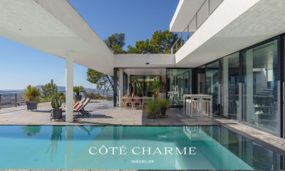 EXCEPTIONNEL LA CAMPAGNE EN VILLE ! TOULON FARON MAGNIFIQUE VILLA D'ARCHITECTE VUE MER édifiée en 1963 sur une parcelle de plus de 6300m² de terrain au calme et bénéficiant d'une magnifique vue mer panoramique orientée Sud-Ouest. La villa développant une surface d'environ 200m² sur deux niveaux, se compose : Au rez-de-chaussée : D'une entrée, un double séjour avec cheminée ouvrant sur terrasse vue mer, une cuisine ouverte équipée, 3 chambres dont une suite parentale, une salle d'eau, un dressing. Au rez-de-jardin : accessible par son escalier intérieur, un salon, deux chambres, une buanderie, une chaufferie, une salle d'eau, un grand garage de 45m² et une cave. Un terrain constructible de 720m² pour un ou deux lots complète l'ensemble. Accessibilité aisée, garages, stationnements sur le terrain. FORT POTENTIEL ! RARE A LA VENTE !