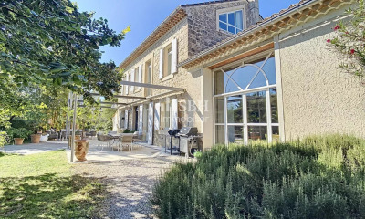 Vous recherchez une somptueuse demeure haut de gamme à l'abri des regards. Nous vous proposons ce magnifique mas du début du XIXème siècle entièrement restauré, avec piscine, à vendre au cœur de la campagne de Pernes-les-Fontaines, dans un environnement calme et verdoyant. Cette propriété d'exception dispose d'un vaste jardin de plus de 6 000 m². L'habitation principale et la dépendance attenante offrent une surface de près de 405 m². À l'entrée de cette demeure, une cour ornée d'un somptueux magnolia vous accueille et constitue l'espace de parking principal, avec un double garage de 45 m². Vous accédez au mas par un premier jardin intime et luxuriant, agrémenté de fleurs et de belles plantes, qui mettent en valeur le cachet authentique de la façade. Une belle terrasse abritée d'environ 50 m² avec cheminée permet de profiter des soirées d'été à l'abri du mistral. L'entrée se fait par un hall qui distribue les espaces de vie de part et d'autre. Un sublime salon/bibliothèque occupe la partie gauche de la maison et bénéficie d'une authentique cheminée conviviale. À droite, vous trouverez une salle à manger ainsi qu'une grande cuisine lumineuse donnant sur la buanderie et un deuxième garage. Les différents accès extérieurs présents dans chaque pièce du rez-de-chaussée apportent une belle luminosité naturelle. Au palier du premier étage, une magnifique bibliothèque vous accueille, où se situe l'espace nuit de la maison. Cet étage comprend trois chambres dont une suite parentale, une salle de bain ainsi qu'une splendide suite avec son propre bureau. La dépendance attenante au mas se compose d'une grande pièce de vie avec cuisine ouverte, ainsi qu'une magnifique baie vitrée donnant sur le jardin luxuriant. L'escalier dessert deux chambres en suite, ainsi qu'une mezzanine pouvant accueillir deux lits en 90. Le jardin entoure la propriété et offre de magnifiques espaces verts, à l'abri des regards, avec une piscine de 15x5 m et sa terrasse, sans oublier un superbe verger de cerisiers, abricotiers, pruniers, pommiers et oliviers. Ce beau mas dans le Comtat Venaissin garantit une vie confortable et paisible, équipé de panneaux photovoltaïques et en partie climatisé. Une propriété idéale pour une vie de famille ou un hébergement touristique de grande qualité. Mas à vendre par l'agence immobilière de l'Isle-sur-la-Sorgue, en France. Surface de référence retenue pour le DPE : 405 m² Les informations sur les risques auxquels ce bien est exposé sont disponibles sur le site Géorisques : “Conformément à la réglementation en vigueur, la surface DPE de ce bien est établie sur la base d'un mesurage normé de la surface habitable. Ce mesurage peut différer de la surface totale mesurée avec précision par nos équipes commerciales.”