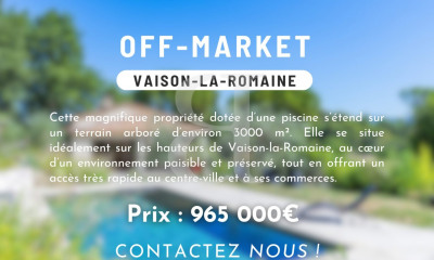 VAISON LA ROMAINE - EXCLUSIVITE Visite immersive 3D disponible sur notre site internet Dans un quartier calme et recherché, à deux pas du centre-ville et toutes ses commodités, venez découvrir cette superbe villa de près de 200 m², alliant charme, confort et prestations de qualité. Implantée sur un terrain clos et paysager de 750 m², cette maison de construction traditionnelle vous séduira par ses volumes généreux et sa luminosité. Dès l'entrée, vous serez conquis par un vaste espace de vie de 78 m², composé d'un salon chaleureux et d'une très belle cuisine entièrement équipée, le tout ouvrant sur une grande terrasse ensoleillée. Le rez-de-chaussée offre également une chambre avec salle d'eau, idéale pour un quotidien tout en confort. À l'étage, trois belles chambres dont une avec salle d'eau privative, ainsi qu'une salle de bains, accueilleront famille et amis en toute sérénité. Côté extérieur, profitez d'un espace détente exceptionnel avec une terrasse de plus de 65 m² et une piscine chauffée, parfaite pour savourer le climat provençal du printemps à l'automne. Un garage spacieux de 23 m² vient compléter ce bien aux prestations soignées. Cette maison est à vendre à l'agence Boschi Immobilier de Vaison la Romaine - 84110. Elle se compose : --Rez-de-chaussée-- Cuisine équipée séjour salon avec cheminée insert et climatisation 78 m² donnant sur terrasse SUD de 67m² et patio 13.25m² Chambre 11.50 m² avec accès terrasse SUD Salle d'eau avec double vasque 4 m² Chambre climatisée 11.25 m² donnant sur extérieur Cellier / buanderie avec 15m² Palier 1.50 m² / WC 1 m² -- Garage /rangement 23 m² avec volet automatique --Premier étage-- Chambre climatisée avec salle d'eau ensuite 24m² 2 Chambres climatisées 21 m² Dégagement 11.25 m² Salle de bains avec douche et baignoire 6.50 m² WC 1.25 m² -- PISCINE chauffée de 2008 - 9.20 x 3.70 - profondeur 1.50 m - coque - filtration à sable - traitement au chlore - ph + niveau automatique - pompe à chaleur -- Fibre --Adoucisseur d'eau Honoraires à la charge du vendeur. Classe énergie B, Classe climat A Montant estimé des dépenses annuelles d'énergie pour un usage standard : entre 1210.00 euros et 1700.00 euros sur les années 2021, 2022 et 2023 (abonnements compris). Les informations sur les risques auxquels ce bien est exposé sont disponibles sur le site Géorisques : georisques.gouv.fr.