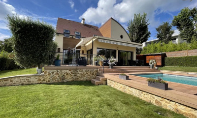 Située à Soisy-sur-Seine (91450), à seulement 30 km de Paris, cette propriété d'exception, autrefois la célèbre guinguette "Le Bois Margot", jouit d'un emplacement privilégié en bord de Seine, dans un cadre naturel enchanteur entre la forêt de Sénart et les rives du fleuve. Implantée sur une parcelle de 1 737 m², cette maison individuelle, d'une superficie totale d'environ 800 m², dont 165 m² habitables, allie charme historique et un fort potentiel de développement, avec de multiples opportunités d'exploitation commerciale. Elle propose une salle de réception spacieuse de près de 220 m², deux rooftops de 45 m² et 160 m², un vaste garage de 160 m² et une cave en pierre meulière de 50 m². L'intérieur se distingue par un double séjour lumineux avec cheminée, une cuisine moderne et entièrement équipée, ainsi qu'une salle de réception offrant une vue panoramique imprenable sur la Seine. La maison dispose également de cinq chambres, parfaites pour accueillir famille ou invités. Elle possède un cellier offrant la possibilité d'aménager un appartement d'environ 45 m². Le garage en sous-sol constitue un espace multifonctionnel, idéal pour le stationnement ou le stockage. Grâce à son entité commerciale, cette propriété se prête à de nombreuses activités, telles que l'aménagement d'une base nautique, d'une guinguette, d'un restaurant, de salons de thé dansants, ou encore de chambres d'hôtes. Elle pourrait également devenir un centre de formation ou proposer des salles en location pour des traiteurs, assurant ainsi un excellent potentiel pour un investissement diversifié. Avec son ponton privé et sa rampe d'accès pour bateaux, elle séduira les passionnés d'activités nautiques. Située dans une commune paisible et verdoyante à seulement 30 km de Paris, cette propriété représente une opportunité rare d'allier qualité de vie, projet entrepreneurial et rendement. Sans vis-à-vis, avec un cadre d'exception et des travaux à prévoir pour personnaliser les lieux, cette propriété offre une toile vierge pour des projets ambitieux. Pour tout renseignement, contactez Marie BELEC ou par email à (EI RSAC 900645722 Nanterre)