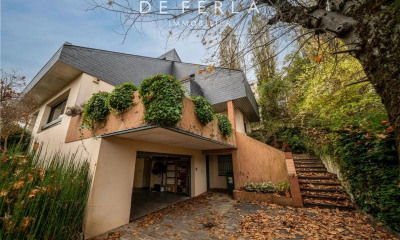 À deux pas de Paris, à Fontenay-aux-Roses et en limite de Sceaux, une maison d'architecte de 245 m² et son jardin. La maison d'architecte a été construite dans les années 1980 sur une parcelle de 500 m². En retrait de la route et au calme, la maison est exempte de tout vis-à-vis grâce au jardin luxuriant qui l'entoure. Bâtie sur trois niveaux, coiffée d'une toiture en ardoise, elle est exposée plein sud et est maillées nombreuses ouvertures laissant pénétrer généreusement la lumière. Toutes sont équipées de baies vitrées en double vitrage avec volets électriques, reliés par une fermeture centralisée. Le rez-de-jardin se compose d'un grand garage fermé pour deux voitures, d'une salle de sport, d'une chambre avec salle d'eau et d'une buanderie. Le rez-de-chaussée se caractérise par le plafond cathédrale du salon à 5,7 mètres de hauteur. Il côtoie une salle à manger, la cuisine équipée et fonctionnelle, et le salon-télé avec cheminée. Au premier étage, deux chambres de grande taille, toutes dotées de salle de bains et d'une terrasse. Plus loin, un bureau.