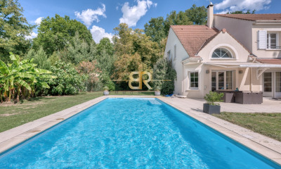 EXCLUSIVITÉ - Le Cabinet BR Immobilier est fier de vous présenter cette PRESTIGIEUSE DEMEURE de 286 m² carrez (485 m² habitable) sur deux niveaux. Nichée dans un écrin de verdure arboré de 1 700 m2 avec PISCINE, elle vous garantit un CADRE IDYLLIQUE, INTIMISTE et PRÉSERVÉ. La maison se compose comme suit : Au rez-de-chaussée : une entrée cathédrale avec une impressionnante HAUTEUR SOUS PLAFOND de 8m ouvrant sur un VASTE triple séjour - salle à manger (exposé SUD-EST) spacieux et baigné de lumière avec une cheminée fonctionnelle. Ce séjour offre un accès à une terrasse agrémentée d'un bel olivier apportant une touche NATURELLE et APAISANTE. Une cuisine séparée et équipée donne également accès à une seconde terrasse située à l'arrière de la maison avec vue sur la PISCINE. Vous trouverez également DEUX BELLES chambres dont une est aménagée en SALLE DE SPORT, une salle de bains et un WC séparé. Au 1er étage, vous découvrirez un second séjour / espace détente avec un BILLARD, DEUX BELLES chambres dont une qui fait actuellement office de BUREAU, et une MAJESTUEUSE SUITE PARENTALE de 55m2 avec salle de bains et douche à l'italienne ainsi qu'un WC et un espace dressing. Vous avez également accès à une petite terrasse qui surplombe le jardin. Vous disposez également d'une pièce avec placards intégrés faisant office de dressing. Au sous-sol total de la maison, vous y trouverez une pièce avec un SAUNA, une seconde pièce qui peut être aménagée en SALLE DE CINÉMA. Le garage permet de garer confortablement 5 voitures, et au fond de celui-ci est aménagé un espace ATELIER. Derrière la maison, se trouve la PISCINE avec une douche extérieure et une TERRASSE sur laquelle vous pourrez déjeuner/diner au sein d'un CADRE VERDOYANT puisque vous aurez vue sur le Bois. D'anciens box à chevaux ont été convertis en espace de stockage/rangements. Taxes foncières : 4 800 € / an. Venez découvrir cette maison qui reflète un véritable havre de paix ! Cette annonce vous est proposée par MENSION Clohé - - N°RSAC: 900 365 743, Enregistré au Greffe du tribunal de commerce de Évry