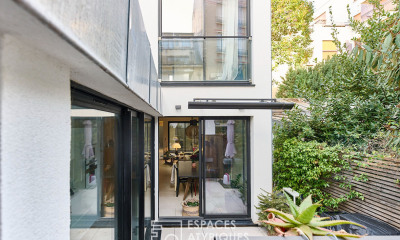 Dans un quartier vivant et recherché, maison de ville indépendante (usage de bureaux), d'une surface utile de 230,81m2 et 296,66 au sol, sur 3 niveaux, au calme d'une voie semi- piétonne à proximité immédiate des commerces , transports et jardins. Entrée, une salle de réunion sous verrière, 10 bureaux, 3 sanitaires, nombreux rangements, combles. Cave.