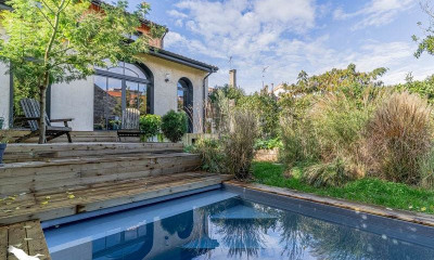 Située dans une rue calme, à proximité de toutes les commodités, maison familiale de 177 m² non mitoyenne, en retrait de rue, sur une parcelle piscinable de plus de 600 m². La maison ouvre sur un premier niveau comprenant une chambre avec salle d'eau, une pièce pouvant être divisée en deux chambres et une salle de bains. L’étage distribue une cuisine séparée, un séjour ouvrant sur une terrasse surplombant le jardin, une chambre avec sa salle d’eau ainsi qu’une chambre/ bureau. Un garage double et un atelier complètent ce bien idéalement placé avec beaucoup de potentiel.