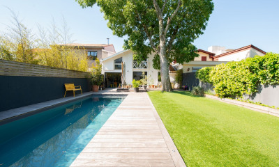 Pour toute question ou demande d'information, pensez à noter et nous communiquer le numéro de référence lors de votre appel : 19974 Pure place par Homki vous invite à découvrir, à seulement 100 mètres du très prisé Parc Bordelais, cette superbe échoppe familiale de 164 m², entièrement rénovée en 2012 et pensée dans les moindres détails pour offrir un confort de vie optimal. Les finitions soignées, la qualité des matériaux et la belle hauteur sous plafond confèrent à l'ensemble une atmosphère élégante et chaleureuse, baignée de lumière. Un espace de vie lumineux et ouvert sur l'extérieur Dès l'entrée, le rez-de-chaussée s'ouvre sur un vaste salon / salle à manger exposé sud-est, sublimé par un plafond cathédrale qui offre volume et luminosité. La cuisine, spacieuse, fonctionnelle et entièrement équipée, prolonge naturellement cet espace de vie. Grâce à de larges baies vitrées, elle s'ouvre sur une grande terrasse extérieure de 17 m², idéale pour profiter des beaux jours. Ce niveau accueille également deux chambres, un bureau pouvant faire office de quatrième chambre ou de salle de jeux, un cellier, des WC indépendants ainsi qu'une élégante salle d'eau. Un garage de 17 m² complète le rez-de-chaussée. Un espace nuit intimiste À l'étage, une large coursive dessert une belle suite parentale comprenant un dressing, une salle d'eau indépendante, des WC séparés ainsi qu'un espace de rangement sous pente. En complément, une cave de 13 m² en sous-sol permet de bénéficier d'un espace de stockage supplémentaire. Un emplacement recherché à Caudéran Située dans une rue calme, résidentielle et pleine de charme, cette échoppe bénéficie d'un emplacement privilégié au cœur d'un secteur très recherché de Caudéran. Elle offre un accès rapide aux écoles renommées (Tivoli, Grand Lebrun, Assomption), aux commerces de la Barrière du Médoc ainsi qu'aux transports (tram D et bus express ligne G). Un bien rare, alliant cachet de l'ancien, fonctionnalité et prestations de qualité, à découvrir sans tarder.