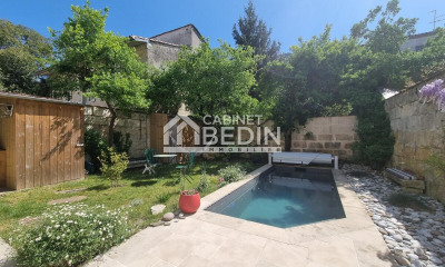 Proche de la place Pey Berland, caché dans une rue piétonne discrète, somptueux hôtel particulier sur trois niveaux avec piscine à fond mobile, jardin de 150 m² particulièrement arboré, sous-sol de 95 m² et garage double. Dès l'entrée, magnifique hall d'entrée baigné de lumière avec ses baies vitrées distribue un salon très élégant avec bibliothèque noble, un grand bureau vu sur la piscine, une charmante cuisine donnant sur l'extérieur et une grande salle à manger. Aux étages, cinq chambres lumineuses dont une magnifique suite parentale, quatre salles de bains, buanderie et grande terrasse de 20 m² ensoleillée. Prestations anciennes préservées : façade en pierre, cheminées, parquet, carreaux ciment, moulures, corniches murales et vitraux. Calme absolu et agencement des pièces idéal pour une vie de famille. Un écrin paisible, une adresse rare à deux pas des commerces, des transports et des bonnes adresses du quartier. A 10 min à pied du triangle d'or et de la place des Grands Hommes et à 20 min en tramway de la gare TGV. Agence John Taylor