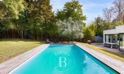 Toulouse, Côte Pavée. Immeuble d'environ 400 m² composé d'une villa contemporaine T8 aux prestations haut de gamme et 1 duplex T2 bis indépendant d'environ 60m2, piscine chauffée, garage et salle de sport. La villa principale d'environ 340 m² s'ouvre sur une galerie d'entrée menant à un vaste double séjour avec salle à manger et cheminée insert. La cuisine américaine équipée bénéficie d'une ouverture directe sur un jardin paysagé avec piscine. Une salle de cinéma ou chambre complète le rez-de-chaussée. À l'étage, une suite parentale avec dressing et salle de bain privative, 2 autres suites avec salle d'eau et dressing, 1 vaste mezzanine (bureau ou salle de jeux). En souplex, une suite avec salle d'eau et accès indépendant au jardin, une salle de sport ou salle de jeux, une cave à vin, une buanderie et une chambre froide offrent des espaces supplémentaires dédiés au confort. Un garage permet d'accueillir trois véhicules. 1 duplex T2 bis indépendant d'environ 60m2 climatisé et de standing complète l'ensemble. Située sur la bas de la Côte Pavée, cette propriété bénéficie d'un emplacement recherché, à proximité immédiate du centre historique de Toulouse, des commerces, des transports et des écoles les plus réputées.