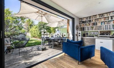 En plein coeur des Sept Deniers, dans une rue très calme et proche de toutes commodités (Stade Toulousain, Airbus, Blagnac, écoles, commerces, etc), cette maison type T4/T5 a été entièrement rénovée et offre des prestations rares sur le secteur. Lumineuse, accueillante et chaleureuse, elle se compose au RDC d'une entrée, de toilettes séparés, d'un salon ouvert sur un balcon/terrasse, d'une cuisine entièrement équipée et aménagée ouverte sur la terrasse et le jardin parfaitement entretenu. A l'étage se trouvent trois chambres, un bureau (pouvant être aménagé en chambre) et une salle d'eau (avec douche a l'italienne, sèche serviettes et double vasque) avec wc. Les combles ont été isolées avec une double épaisseur de laine de verre. La climatisation se trouve à l'étage et suffit pour rafraîchir toute la maison (sachant que la maison reste très fraîche malgré les fortes chaleurs). Le sous-sol offre un espace très confortable avec une chambre supplémentaire et un grand espace dédié au stockage et à la buanderie. La maison offre un exterieur parfaitement entretenu avec une piscine de 4m par 8m, une terrasse en bois, un garage fermé et un jardin joliment arboré avec un système d'arrosage automatique (goutte à goutte). Il est également possible de rentrer une ou deux voitures dans l'allée intérieure de la maison ainsi que dans la rue devant la maison. Avec ses prestations de qualité (parquet en chêne massif, électricité aux normes, radiateurs neufs, tout à l'égout, isolation, climatisation, double vitrage, vmc, piscine, terrasse, aménagement intérieur et extérieur...), cette maison offre 173 m² de surface utile (115 m² de surface habitable + 35 m² de dépendances). Elle est un bien rare sur le secteur des Sept Deniers et fera le bonheur d'une famille soouhaitant une maison sans travaux dans un quartier calme tout en étant proche de tous les grands axes toulousains et du centre ville. A visiter rapidement... Les informations sur les risques auxquels ce bien est exposé sont disponibles sur le site Géorisques : www.georisques.gouv.fr »
