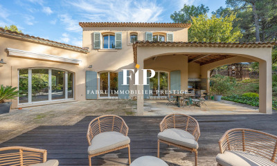 Le groupe Nicolas Staes vous présente à la vente sur Aix-en-Provence sud au calme absolu dans un bel environnement situé dans un domaine sécurisé proche de l’école internationale IBS et de toutes commodités, cette villa californienne récente construite entièrement de plain pied aux finitions soignées. Bénéficiant d’une vue dominante sur la nature la villa développe une superficie habitable de 285 m2, édifiée sur un beau terrain de 1500 m2 arboré et paysager composé d’une piscine chauffée. La villa exposée au sud se compose d’une belle pièce de réception, d’une belle entrée, une cuisine salle à manger avec îlot central donnant sur une large terrasse. Buanderie, cellier attenant. 4 suites équipent la villa dont 1 masters. 1 grand garage ainsi qu’un sous sol de 120 m2 avec cave à vin tempérée viennent compléter ce bien d’exception. Prix honoraires inclus.