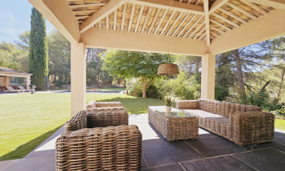 Située au pied de la Sainte Baume, entre Aix-en-Provence et Marseille, cette propriété d'exception se niche au bout d'une impasse, dans un cadre enchanteur et recherché bénéficiant de la proximité des entrées d'autoroutes et au calme. Ce bien rare dispose d’un vaste terrain de plus de 12 600 m², comprenant une villa principale avec un hall d'entrée, une cuisine séparée entièrement équipée, une buanderie, un salon avec bar, une salle à manger, une suite double avec deux chambres, une salle de bains et WC, ainsi que des toilettes pour invités. À l'étage, un bureau en mezzanine et deux suites avec salle d'eau, WC et dressing complètent l'ensemble. Les dépendances comprennent un appartement T2 de 50 m² avec terrasse et entrée indépendante, un pool house, un garage de 50 m², un local technique et une cave à vin. Le parc paysager accueille une grande piscine avec terrasse, un bassin et un carport avec une borne de recharge pour véhicules électriques. Les finitions soignées, l'exposition plein sud, et les généreux espaces de cette propriété répondront aux attentes des clients les plus exigeants. Cette demeure est idéale pour une résidence principale offrant calme et sérénité, ou pour une activité touristique de type chambres d'hôtes ou location saisonnière.
