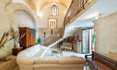 Mas à vendre dans notre agence immobilière, L'Agence en Provence située à Boulbon Authentique demeure en pierre du XVIIIe siècle, nichée au coeur d'un domaine d'environ 30 hectares, offre une opportunité rare sur les hauteurs de la montagnette de Boulbon sur la commune de Barbentane . Cette propriété unique se trouve dans un cadre exceptionnel, entourée d'une réserve naturelle abritant une pinède, une garrigue, des oliviers, des chênes truffiers, des prairies, et bien plus encore. Explorez ce lieu remarquable et découvrez ses trésors cachés. La propriété comprend un mas principal d'environ 350 m2, ainsi qu'une maison de gardien et une dépendance, offrant un ensemble harmonieux et unique. Cette demeure dispose de tous les atouts nécessaires pour vous séduire. Imaginez de vastes pièces de réception en enfilade, une cuisine empreinte d'authenticité, d'imposantes cheminées émanant leur chaleur dans chaque pièce, et des baies vitrées délicates permettant à la lumière d'inonder chaque recoin. À l'étage, découvrez cinq chambres, deux salles de bains, ainsi qu'un salon/bibliothèque orné d'un plafond cathédral. À l'extérieur, un univers romantique s'offre à vous, à disposition, des forages, une sellerie, deux box à chevaux, un hangar, un atelier, deux garages ainsi une orangerie qui donne directement accès sur une somptueuse piscine, entourée de majestueux oliviers. L'étendue totale du terrain, s'étirant sur 30 hectares d'un seul tenant, vous garantit une intimité et une tranquillité inégalées, dans ce cadre naturel préservé qui semble être tout droit sorti d'un tableau à ciel ouvert. Si vous désirez des renseignements contactez-nous. COMPTOIR IMMOBILIER DE FRANCE - Christophe BOUNIOL - EI Agent commercial RSAC No 408 076 321 - Ville du greffe : NIMES - Plus d'informations (réf. 17471) Cette annonce vous est proposée par M. CHRISTOPHE BOUNIOL - EI - NoRSAC: 408 076 321, Enregistré au Greffe du tribunal de commerce de NIMES COMPTOIR IMMOBILIER DE FRANCE - Plus d'informations - « Les informations sur les risques auxquels ce bien est exposé sont disponibles sur le site Géorisques : »