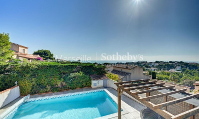 Musso Immobilier vous propose à la vente cette propriété exceptionnelle de 5 pièces avec vue mer à Carry-le-Rouet, résidence Barqueroute. Découvrez cette magnifique propriété de 215 m² sur un terrain de 750 m², située dans le prestigieux lotissement de la résidence Barqueroute à Carry-le-Rouet. Offrant une triple exposition Sud, Est et Ouest, cette demeure propose des prestations de qualité dans un cadre sécurisé et recherché. La résidence Barqueroute est réputée pour ses prestations qualitatives et son haut niveau de sécurité, avec un système de caméra de surveillance 24/24 et une plage privée. Le lotissement est parfaitement entretenu, offrant un cadre de vie agréable et sécurisé. Le rez-de-chaussée comprend une pièce de vie spacieuse, une salle à manger, des WC séparés, deux chambres parentales, une cuisine ouverte, et une véranda attenante à la pièce de vie. À l'étage, vous trouverez un coin bureau, ainsi que deux chambres supplémentaires dont une suite parentale avec extérieur et vue mer. Le grand jardin arboré avec piscine et pool house est exposé plein sud, offrant un espace de détente idéal. Un coin salle à manger à l'ombre permet de se rafraîchir pendant les journées ensoleillées. Le jardin, sans vis-à-vis et au calme, assure une tranquillité absolue. Trois places de parking à l'intérieur de la propriété complètent ce bien. La propriété est idéalement située, proche de toutes commodités, des plages et du centre-ville de Carry-le-Rouet, offrant un accès facile aux commerces, restaurants et activités de loisirs. Cette propriété est très rare à la vente dans ce secteur.