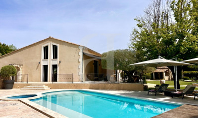 En exclusivité, sur les hauteurs de Châteaurenard dans un quartier prisé, au calme en position dominante, belle maison qualitative de plain pied. Celle-ci se compose d'une partie principale de 170 m2 et d'une dépendance attenante de 65 m2 l'ensemble sur un terrain clos et paysagé de 2600 m2 avec piscine chauffée 8*4.5. La maison est fonctionelle et offre des volumes généreux, vous y découvrirez un grand salon ouvert sur une salle à manger avec cuisine ouverte équipée, quatre chambres dont une suite parentale avec dressing et salle d'eau, 2 salles d'eau, 3 wc, une buanderie. La dépendance comprend une spacieuse pièce de vie avec cheminée et coin cuisine, une grande chambre (24m2), une salle d'eau,wc. A l'extérieur la quiétude des lieux saura vous séduire, terrain clos et arboré, une belle piscine au sel chauffée, plusieurs terrasses et espace détente à l'abri des regards, un garage et un auvent complétent l'ensemble. Prestations : menuiseries double vitrage, climatisation, poêle à bois, fosses conformes, chaudière gaz 'propane', forage, éléctricité refaite en 2020, portail automatique .. A proximité immédiate des départs de randonnées. Pour vous accompagner dans votre projet: Agathe Bonnafoux . - Annonce rédigée et publiée par un Agent Mandataire -