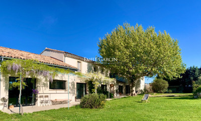 Idéalement située au c?ur du centre-ville de Châteaurenard, dans un environnement calme et sans nuisances, cette maison de ville entièrement rénovée se distingue par ses volumes exceptionnels, son grand garage et ses multiples possibilités d?usage, alliant confort de vie et potentiel locatif. L?agencement intérieur se compose, au rez-de-chaussée : grand garage de 50 m² ; studio indépendant de plain-pied de 67 m² comprenant pièce de vie, chambre, salle de bains, WC ; accès direct à un jardin clos. Le premier étage se compose de : vaste pièce de vie de 60 m² baignée de lumière grâce à de larges baies vitrées, avec espace cuisine à aménager selon vos envies ; cellier ; suite parentale avec chambre, salle de bains, WC séparés ; seconde chambre pouvant faire office de dressing. Le deuxième étage comprend : deux chambres supplémentaires ; salle de bains ; WC séparés ; pièce polyvalente pouvant être aménagée en salon TV, bureau, bibliothèque ou salle de sport ; combles isolés offrant un espace de stockage appréciable. Les espaces extérieurs comprennent : un jardin clos au rez-de-chaussée à aménager de 50 m² , une terrasse à l'étage de 36 m² exposée plein sud, dont le plancher renforcé permet l?installation d?un jacuzzi ou d?un bassin. Les équipements comprennent : double vitrage ; climatisation réversible ; fibre internet possible ; eau de ville ; tout-à-l?égout ; électricité et plomberie refaites à neuf ; toiture neuve ; garage de 50 m² (rare en centre-ville). Cette propriété rare à Châteaurenard séduira par son emplacement central, ses volumes généreux et sa configuration idéale pour une résidence principale, un projet familial ou un investissement à forte valeur ajoutée, à proximité immédiate des commerces et commodités. Les informations sur les risques auxquels ce bien est exposé sont disponibles sur le site Géorisques : http://www.georisques.gouv.fr