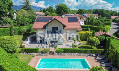 DIVONNE SOTHEBY'S INTERNATIONAL REALTY vous présente une maison de plain-pied offrant une surface utile de 140 m², idéalement située à proximité immédiate de toutes les commodités. Cette propriété comprend une cuisine équipée ouverte sur un spacieux séjour, une suite parentale avec salle de bains privative, ainsi que deux chambres disposant chacune de leurs propres points d'eau, situées dans une aile séparée. De nombreux espaces de rangement, un terrain pouvant accueillir une piscine,ainsi que la possibilité d'une extension significative en accord avec le PLU. Un garage double complète cette offre exceptionnelle. DIVONNE SOTHEBY'S INTERNATIONAL REALTY se positionne comme votre expert dans la vente de propriétés de prestige dans le Pays de Gex et le Genevois (Grand Genève). Pour plus d'informations sur les risques auxquels ce bien est exposé, veuillez consulter le site Géorisques à l'adresse suivante : []().