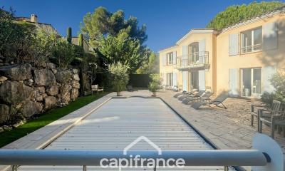 Le Domaine comme un Art de Vivre, la propriété comme un espace authentique Établie au cœur du Domaine & Golf de Pont Royal, dans l'un de ses secteurs les plus prisés, cette demeure de 290 m² s'impose comme une pièce maîtresse. Posée dans un écrin de verdure de 2 600 m², structuré en restanques naturelles, elle compose un récit où la nature devient couture, où chaque espace extérieur est pensé comme une scène dédiée à l'art de vivre méridional. Sa piscine, idéalement exposée, signe un tableau où la lumière, le calme et le plaisir évoluent au rythme des saisons. Un reportage drone a été effectué pour mieux appréhender l'extérieur à visionner : L'ESPACE JOUR Lumière, volumes et fluidité L'entrée donne le ton : accueillante , ouverte sur le grand salon et la salle à manger, agrémentée d' une cheminée à foyer ouvert, forment un ensemble généreux, subtilement orchestré pour que la lumière omniprésente devienne le fil directeur. Les larges ouvertures vitrées prolongent le décor vers la terrasse, invitant à savourer les douceurs bucoliques des journées provençales. Un intérieur qui respire, un extérieur qui dialogue : la fluidité est totale. Attenante à cette scène chaleureuse, la cuisine dinatoire équipée d'un piano culinaire devient un véritable espace de création complétée par une arrière cuisine complète fonctionnelle. En s'ouvrant sur la terrasse avec vue panoramique, on appréciera la fluidité de l'agencement. L'ESPACE NUIT : En demi plain-pied, deux chambres disposant chacune de leur salle de bain composent un espace nuit intimement structuré. Un escalier mène ensuite à une suite parentale nichée sous un plafond cathédrale, véritable pièce iconique avec sa salle de bain privée, les toilette indépendant, le dressing aménagé, un vrai refuge lumineux , avec une atmosphère apaisée. Deux autres chambres élégantes complètent cet univers nocturne, accompagnées d'une salle de douche délicate et vintage. L'EXTERIEUR : Le jardin naturel offre un spectacle sans artifices. la vue panoramique sur les collines, les essences provençales, les restanques structurées dessinent une scène changeante au fil des saisons . La piscine, parfaitement intégrée, se pare de deux terrasses — une ombragée, une ensoleillée — qui dominent la nature. Un décor pour les amoureux de lumière, d'air pur et d'horizons ouverts. LE SOUS-SOL L'espace des possibles : Un potentiel à révéler. soit une surface de 125 m² à aménager selon vos envies Un atelier, une cave, un sauna, une salle de sport… Cet espace brut n'attend qu'une inspiration : la vôtre. LOCALISATION & PERFORMANCES Un triple garage de 55 m2 accessible de l'intérieur , ainsi que trois places de parking À seulement 35 minutes d'Aix-en-Provence et de sa gare TGV, la propriété bénéficie d'un emplacement stratégique, sans renoncer au calme absolu. Son DPE classé B, rare sur le secteur, en fait un bien durable et recherché. Une Maison au domaine comme une Signature. je vous invite à visionner cette vidéo pour ceux qui ne connaissent pas encore le domaine de Pont Royal : ?v=gr5ynrjdsX8 j'attends vos appels pour une visite Fabienne Bordone Les honoraires sont à la charge du vendeur. Les informations sur les risques auxquels ce bien est exposé sont disponibles sur le site Géorisques : georisques. gouv. fr. Réseau Immobilier CAPIFRANCE - Votre agent commercial (RSAC N°453 069 916 - Greffe de TARASCON) Fabienne BORDONE Entrepreneur Individuel à Responsabilité Limitée Réf.934640