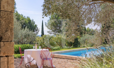Exclusivité. Rare au coeur de Maussane. Charmante et authentique maison de village avec de beaux espaces, exploitée actuellement en restaurant au rez-de-chaussée. L'ensemble offre environ 200 m². A l'étage, une habitation avec deux chambres, séjour, cuisine et salon. Patio ombragé, place de parking, terrasse et piscine. Nombreuses possibilités d'aménagement ou d'exploitation.