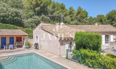 Située dans un environnement calme, en position dominante, cette villa de 320m² s'étend sur 3 niveaux et comprend 4 chambres, une vaste entrée lumineuse, une salle de sport avec sauna, garage et cave. Profitez de la large piscine à débordement nichée sur un terrain arboré de 7000m² avec production d'huile d'olive.