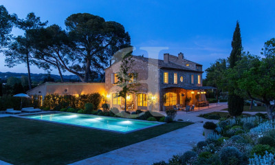 Au cœur du village de Paradou, au calme sans être isolée et à seulement quelques pas des commerces. Nichée au fond d'une impasse, charmante maison des années 1990, offrant une surface habitable de 224 m² répartie sur deux niveaux. Au rez-de-chaussée : un grand séjour (salon / salle à manger) avec sa cheminée en pierre de Fontvieille ouvrant sur une terrasse ombragée exposée plein sud, une belle cuisine disposant d'une arrière-cuisine entièrement équipée, spacieuse et fonctionnelle. Une salle à manger d'hiver sous une belle verrière d'environ 35 m² et une suite parentale avec dressing et salle de bains. Au premier étage, une seconde suite parentale avec dressing et salle de bains, ainsi que deux chambres se partageant une salle de bains. Côté extérieur, le jardin entièrement clos, est agrémenté d'une piscine 11m x 5,5m avec son pool-house bordé d'oliviers, une fontaine et un potager. Au nord de la maison un parking permettant de stationner plusieurs véhicules dont deux sous un carport. Possibilité d'extension.