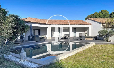En exclusivité sur la commune de Ventabren, à 15 minutes du centre ville d'Aix en Provence, 15 minutes de la gare TGV et de l'aéroport, Estelle Chapelin a le plaisir de vous présenter cette merveilleuse propriété de 275m² aux prestations soignées. Sur un terrain plat de 2400m², arboré, clôturé et sans aucune nuisance visuelle ou sonore, vous serez charmé par cette batisse lumineuse, contemporaine et fonctionnelle. Au rez de chaussée, une entrée de 13m², vous accueille. Elle donne sur une majestueuse pièce de vie de 98m², très lumineuse, huisseries Aluminium à galandage, climatisation gainable dans toute la maison, cuisine ouverte et son cellier fermé de 5m². Toujours de plain pied, une suite parentale de 35m² exposée plein sud (chambre, dressing et salle de bain/wc) et un wc séparé. A l'étage, 4 belles chambres de 14m² à 17m², 1 salle de bain et 1 salles d'eau et 1 WC séparé. Un sous-sol de 150m² avec une hauteur de 2,20m, permettant de garer plusieurs voitures, de stocker du matériel mais également de creer une salle de sport, une salle de cinéma ou une salle de jeux/musique, si vous le désirez. Enfin, 1 guest-house indépendante de 38m² de plain pied vous permettra d'accuellir vos amis ou la famille. Cette dépendance est intégralement équipée, cuisine, salon, chambre, salle d'eau et climatisation. Côté exterieur, une pergola bio-climatique de 60m² longe le salon et vous permettra de profiter le l'extérieur été comme hiver, quelque soit le climat. La piscine, bâtie en 2022, mesurant 9m*4,5m au sel est sécurisée par une couverture en dur. La propriété jouit d'un véritable calme ce qui confère à cette propriété le lieu parfait que ce soit pour le quotidien ou pour les vacances. Pour plus d'informations, veuillez contacter Estelle Chapelin Excellent diagnostic énergétique: DPE B indice132/A indice 4 Mandat n° 113266. Honoraires charges Vendeurs. Estelle Chapelin : EI enregistré sous n° 903 238 855 RSAC Aix en Provence. Les informations sur les risques auxquels ce bien est exposé sont disponibles sur le site Géorisques : Retrouvez l'ensemble de nos biens sur notre site :