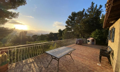 À deux pas des calanques de Marseille, sur les hauteurs du Redon, dans le 9e arrondissement, une maison et son studio accrochés à un terrain en restanques. La maison de 215 m² environ, tournée vers l'ouest, est élevée de trois niveaux, dans un jardin clos en restanques, avec une large vue sur la rade de la cité phocéenne, ses îles, ainsi que la colline Saint-Joseph. Pensée pour tirer parti d'un panorama exceptionnel, elle est résolument tournée vers l'ouest. Ses façades sont jalonnées de larges baies et portes-fenêtres à double vitrage. Le toit, à la Marseillaise, est composé de tuiles mécaniques en terre cuite, tandis que l'isolation des murs repose sur de la laine de bois. Depuis la route, l'entrée principale s'effectue par un portillon situé entre les deux garages ; un escalier mène alors au rez-de-chaussée établi sur la première restanque. Plus au sud, un escalier en pas d'âne qui part de la route rejoint directement la deuxième restanque et le rez-de-jardin. Un studio de 34 m², derrière la maison, avec accès indépendant, jouxte la piscine et permet de loger indépendamment proches ou hôtes de passage. Quatre voitures peuvent stationner confortablement dans les deux garages de près de 60 m² et 20 m².