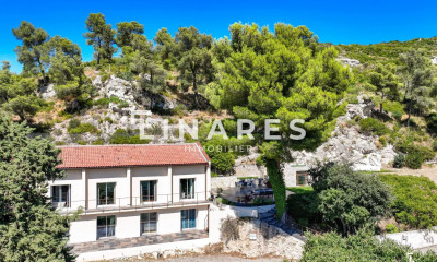 Vente discrète. Photo non contractuelle. Villa contemporaine de prestige de 185 m2 avec jardin paysagé, type 5/6 (4 chambres, 3 salles de bains, 4 toilettes) située dans un quartier familial et privilégié du 9 ièm (Entre Mazargues et Vaufrèges). Le cœur de la maison est lumineux, de grandes baies vitrées à galandages font de la nature verdoyante un tableau permanent. Un vaste salon, une élégante salle à manger et une cuisine américaine dernier cri composent l'espace de vie. La suite parentale avec salle de bain et dressing attenants se découvre derrière une porte en bois massif. Les matériaux sont qualitatifs. Un escalier majestueux distribue un espace nuit en rez-de-jardin, dans lequel se succèdent 3 chambres, deux salles d’eau, une buanderie et une pièce de jeu (ou bureau). L’extérieur de la maison s’articule autour de nombreuses terrasses (patio dinatoire, solarium, salon d’agrément), la piscine au sel de 10*4 dispose de l’option nage à contre-courant. Une cave avec roche apparente et un garage pour deux voitures complètent l’ensemble.