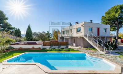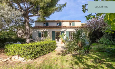 Dans le 12e arrondissement de Marseille, au calme absolu, une maison de 1968 aux lignes épurées, ses bureaux et son jardin minéral . La maison, d'une surface de plus de 260 m² habitables, a été bâtie en 1968 sur un terrain clos de murs. Deux portails d'entrée en commandent l'accès : l'un au nord, l'autre au sud. C'est un architecte héritier de l'esprit de Le Corbusier qui en a conçu les plans en reprenant quelques-uns des codes du maître : toit-terrasse, plan libre supporté par des pilotis, poteaux en lieu et place des murs porteurs, lignes épurées, simples et géométriques, béton brut ou armé. Deux sculptures de têtes d'animaux en pierre calcaire, provenant vraisemblablement d'une ancienne fontaine, viennent surprendre le regard sur les façades est et ouest. L'édifice a été construit en angle : la partie habitable est ceinturée par une coursive qui se prolonge à travers une vaste terrasse plein sud, supportée par des piliers. Celle-ci est abritée par un mur percé d'une claustra moucharabieh et accessible d'un côté par un escalier de béton brut en colimaçon et de l'autre par la coursive. Deux autres escaliers relient cette dernière au jardin. La façade sud forme une ligne horizontale qui sculpte, dans le paysage urbain, un horizon architectural très marqué et structure avec force l'espace environnant. La maison bénéficie de deux entrées principales : l'une au premier niveau côté ouest et l'autre à l'étage, côté nord. Les multiples ouvertures, angulaires et sans artifice, sont larges, permettant une bonne circulation de la lumière.