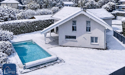 Réf. 1788SR Echenevex, dans un lieu au calme et discret, vous serez charmé par cette maison individuelle de 7 pièces d'une surface de 321m2 (Carrez 168m2) construite en 2001 sur 3 niveaux sur un terrain clôturé et arboré de 1'030m2. Elle est composée d'une entrée, une cuisine entièrement équipée avec cellier ouverte sur un spacieux séjour/salle à manger avec accès terrasse/jardin avec vue dégagée sur les montagnes et le Lac Léman, une chambre à coucher/bureau+salle d'eau avec accès à une véranda indépendant (possibilité d'y créer une activité libérale) et un WC séparé. A l'étage, quatre chambres à coucher dont l'une parentale avec dressing, une salle de bains et un WC séparé. Au sous-sol, un coin cinéma, une buanderie avec local technique, deux caves et un grand garage double. Possibilité de créer un studio indépendant avec accès privatif. Plusieurs places de parking sont disponibles à l'extérieur. A découvrir rapidement! Contact: Stéphane Reis Swixim International +41 78 898 66 66