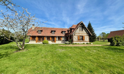 En Normandie, dans un environnement campagne préservé, au calme, à 2 km du charmant village de Blangy-le-château, à vendre maison normande avec dépendance. La maison en colombage avec soubassement pierre d'environ 140 m² rénovée, comprend au rez-de-chaussée , un très beau salon cathédrale avec cheminée, un coin repas , une cuisine indépendante aménagée et équipée, des toilettes invités , un espace nuit desservant deux chambres avec salle d'eau et toilettes. A l'étage, une belle pièce palière servant de salon lecture, une grande chambre avec salle d'eau et toilettes, une quatrième chambre complète cet étage. La propriété est édifiée sur un terrain arboré d'environ 4000 m² avec un double garage en dépendance.