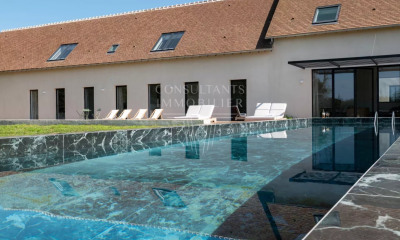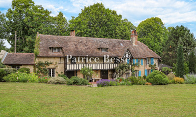 Entre Trouville et Honfleur, à 1 km de la mer, sur près de 5.000 m², une longère du 19e s. et un logis, récemment restaurés. Au sein du bocage, le long d'un chemin, un double portail en bois plein ouvre sur des espaces enherbés. La maison est séparée du grand garage et d'une seconde dépendance par une cour gravillonnée. Au delà et orienté à l'ouest, le terrain se déploie, entièrement bordé par des haies. Les arbres de haut jet y sont nombreux. La propriété est traversée par un ru vivant qui s'écoule vers le chemin.