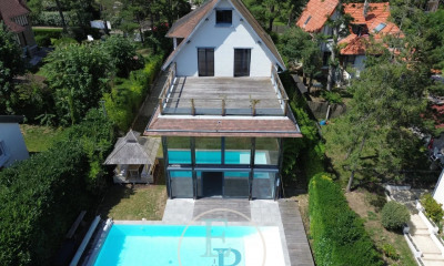 En Normandie, dans la station balnéaire de Merville-Franceville, à seulement quelques minutes à pied de la plage et des commerces, élégante demeure anglo-normande au cœur d’un parc arboré de plus de 5 800 m². La Villa, d’une surface d’environ 248 m², est édifiée sur deux niveaux, elle présente au rez-de-chaussée une entrée desservant un espace de vie traversant et composé d’une salle à manger avec cheminée. Il se poursuit par un chaleureux salon/salle de billard également agrémenté d’une cheminée, une cuisine indépendante et un bureau avec possibilité d’aménagement en chambre de plain-pied. L’étage comprend six chambres spacieuses, dont deux disposant d’un point d’eau, ainsi qu’une salle de bains et une salle d’eau. La propriété bénéficie de matériaux typiques et assez uniques. Une cave à vin complète ce bien. L’ensemble nécessite quelques travaux de rénovation. À l’extérieur, la propriété offre un jardin de 5 805 m² fleuri et arboré avec un court de tennis privé neuf, une petite maison et un garage indépendant. Michaël Zingraf Cabourg vous propose un bien rare à la vente, idéalement localisé, et de caractère, offrant de nombreuses possibilités d’activités qui séduira les personnes à la recherche d’une grande maison de famille