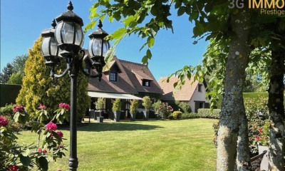 En Normandie, à quelques minutes de Pont-l’Évêque, dans un domaine privé et sécurisé de grande qualité, agréable maison contemporaine entièrement rénovée, parfaitement située au milieu de la verdure. La maison, d’une surface d’environ 276 m², est en excellent état. Le rez-de-chaussée présente une grande pièce de vie prolongée par une terrasse ensoleillée avec vue imprenable sur la campagne, une cuisine meublée et équipée ainsi qu’une suite parentale de plain-pied avec salle de douches et dressing. L’étage est composé de quatre chambres, dont deux avec salles de bains ou douches, et d’une salle de bains indépendante. Un grand sous-sol avec garage, salle de jeux / home cinéma et buanderie, complète ce bien. La maison est édifiée sur un terrain en partie boisé de plus d’un hectare édifié en position dominante offrant une vue dégagée avec une orientation principale vers le sud. Michael Zingraf Real Estate Deauville vous présente à la vente une maison parfaitement située et en excellent état au cœur d’un domaine privé particulièrement recherché. (Procédures judiciaires en cours)