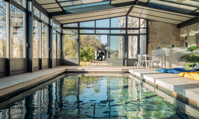 Nichée au sommet des douces collines charentaises, au bout d'un paisible hameau, cette élégante demeure de campagne de 425 m² habitables séduit par son alliance parfaite entre authenticité et confort moderne. Implantée sur près d'un hectare de parc paysager, elle bénéficie d'une tranquillité absolue et d'une vue spectaculaire sur le château médiéval de Villebois-Lavalette. Une rénovation soignée et harmonieuse Récemment restaurée avec des matériaux nobles et des finitions haut de gamme, la maison conjugue le charme de l'ancien – poutres apparentes, cheminées en pierre, parquets d'époque – à un style contemporain raffiné – béton ciré, cuisine moderne, double vitrage, pompe à chaleur et isolation performante. La maison principale Rez-de-chaussée : Hall d'entrée accueillant, cuisine américaine moderne avec îlot central, salle à manger lumineuse offrant un panorama exceptionnel, deux salons dont un spacieux avec cheminée en pierre, deux chambres dont une avec salle d'eau attenante, salle de bains, buanderie. Étage : Suite parentale généreuse, trois chambres supplémentaires, salle de douche. Les dépendances Maison d'amis (70 m²) : vaste pièce de vie ouverte (salon, cuisine, salle à manger), chambre avec salle d'eau attenante, terrasse couverte avec vue sur la campagne. Autres dépendances : granges, dont une transformée en terrasse couverte. Extérieurs : piscine chauffée, parc arboré et mature. Un fort potentiel d'accueil La propriété offre la possibilité d'aménager un gîte (sous réserve d'autorisations). Une grande grange dispose déjà de plans pour la création d'une habitation de trois chambres. Ses atouts Charme intemporel, prestations haut de gamme, vue imprenable, environnement paisible, capacité d'accueil importante. Un lieu rare où vivre rime avec sérénité et élégance.